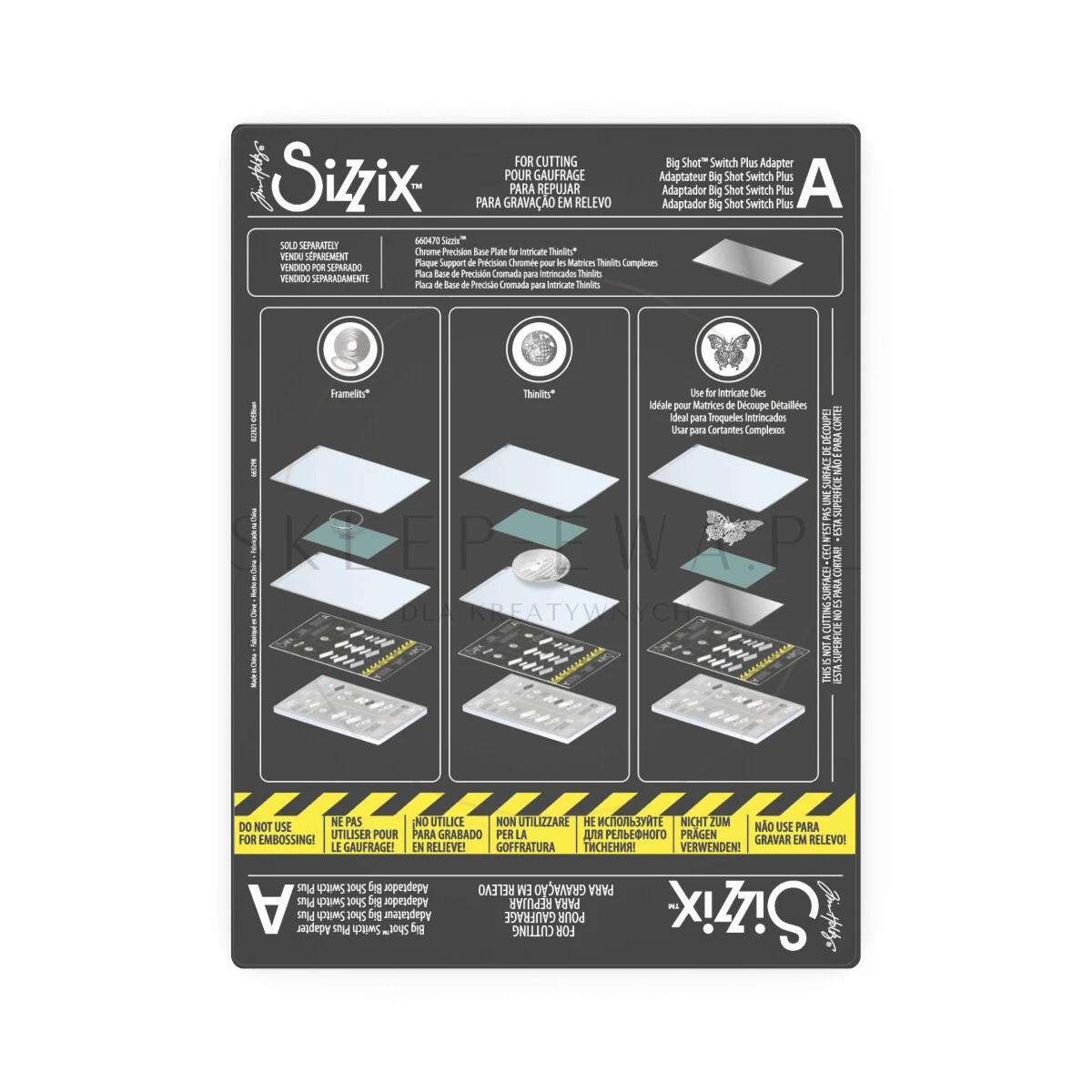 - Adapter do cienkich wykrojników Sizzix Framelits i Thinlits.