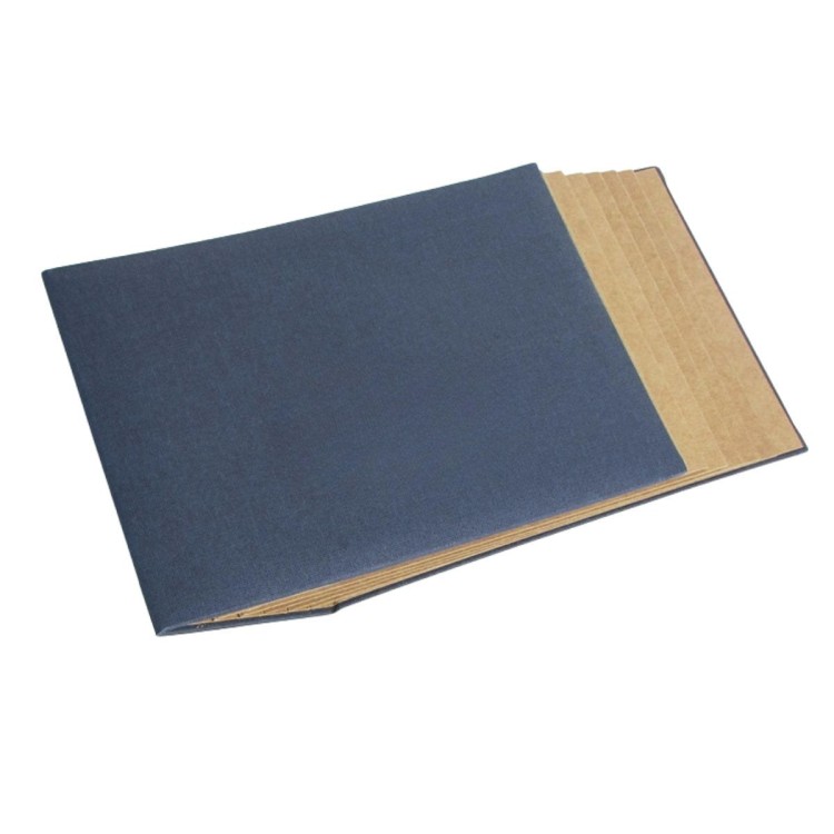 Elegancki album kraftowy do scrapbookingu w granatowej oprawie. 6 grubych kart 250g, format 18x13,2 cm, granatowe płótno i ręczne wykonanie od Eco Scrapbooking. Idealny do ozdabiania, zdjęć i pamiątek na ślub, chrzest czy komunię.