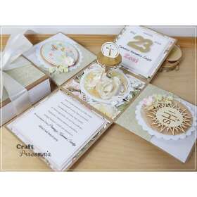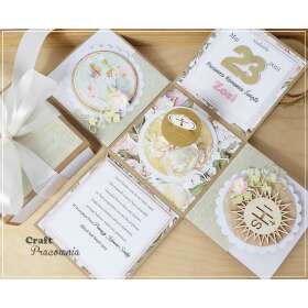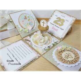 Cześć, Wszystko wskazuje na to, że sezon komunijny w pełni, a najchętniej wybieraną na komunie pamiątką są exploding boxy. Dlatego też dziś zobaczcie właśnie taki komunijny exploding box z przestrzennym kielichem na środku. Spróbowałam zrobić go w najmodniejszym w tym roku stylu, czyli rustykalnym/leśnym – do tego wykorzystałam śliczne papiery P13 z kolekcji Forest Tea Party, dodatkowo, aby podbić efekt, zrobiłam go na kraftowej bazie.