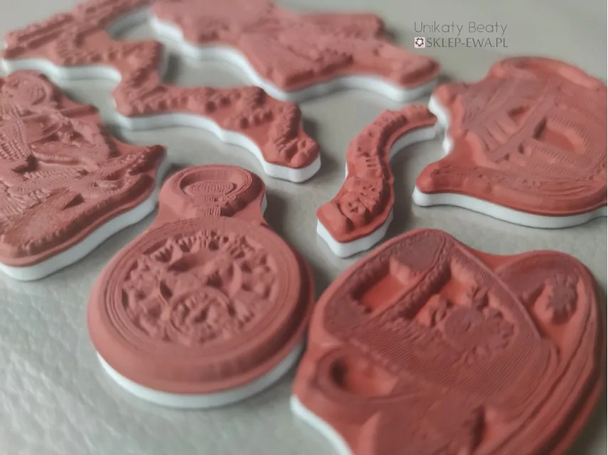 - są bardziej twardsze niż stemple silikonowe, nie potrzeba zatem wielkiego wyczucia przy odbijaniu motywów,