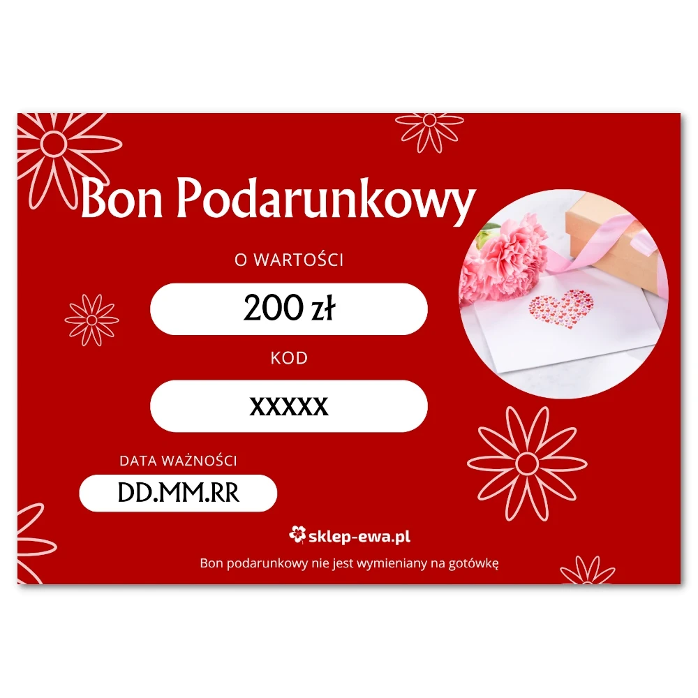 Oferujemy bony podarunkowe o wartościach 50 zł, 100 zł oraz 200 zł. Możesz dowolnie łączyć bony, aby uzyskać pożądaną wartość. Domyślnie dla Twojej wygody wystawiamy jeden bon na całkowitą zakupioną kwotę. Jeśli preferujesz otrzymać kilka bonów o mniejszych nominałach sumujących się do wybranej kwoty, prosimy o dodanie takiej informacji w uwagach do zamówienia. Dziękujemy za wybór naszego sklepu i życzymy udanych zakupów!