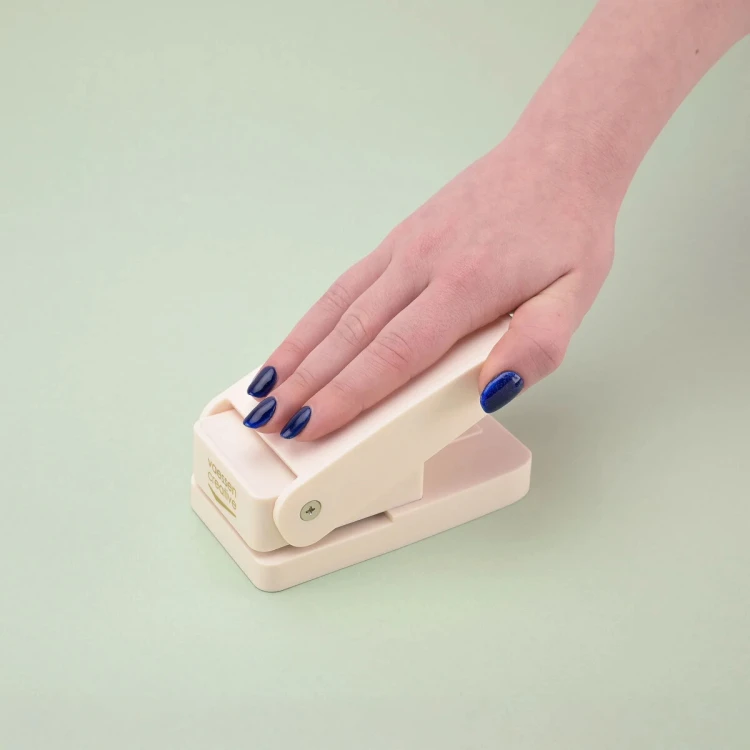 Seria From the Postbox marki Vaessen Creative to hołd dla estetyki starej poczty, kopert i znaczków. Dziurkacz Heavy Duty to jej najbardziej wszechstronna propozycja – wzmocniona konstrukcja pozwala ciąć materiały, przy których zwykłe dziurkacze odmawiają posłuszeństwa. Efektem jest precyzyjny kształt znaczka o wymiarach 3,8 × 3,2 cm, gotowy do użycia od razu po wycięciu.