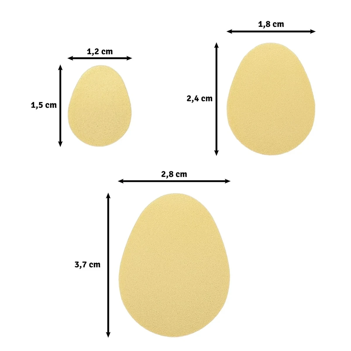 - Duże jajko: ok. 2,8 cm x 3,7 cm.