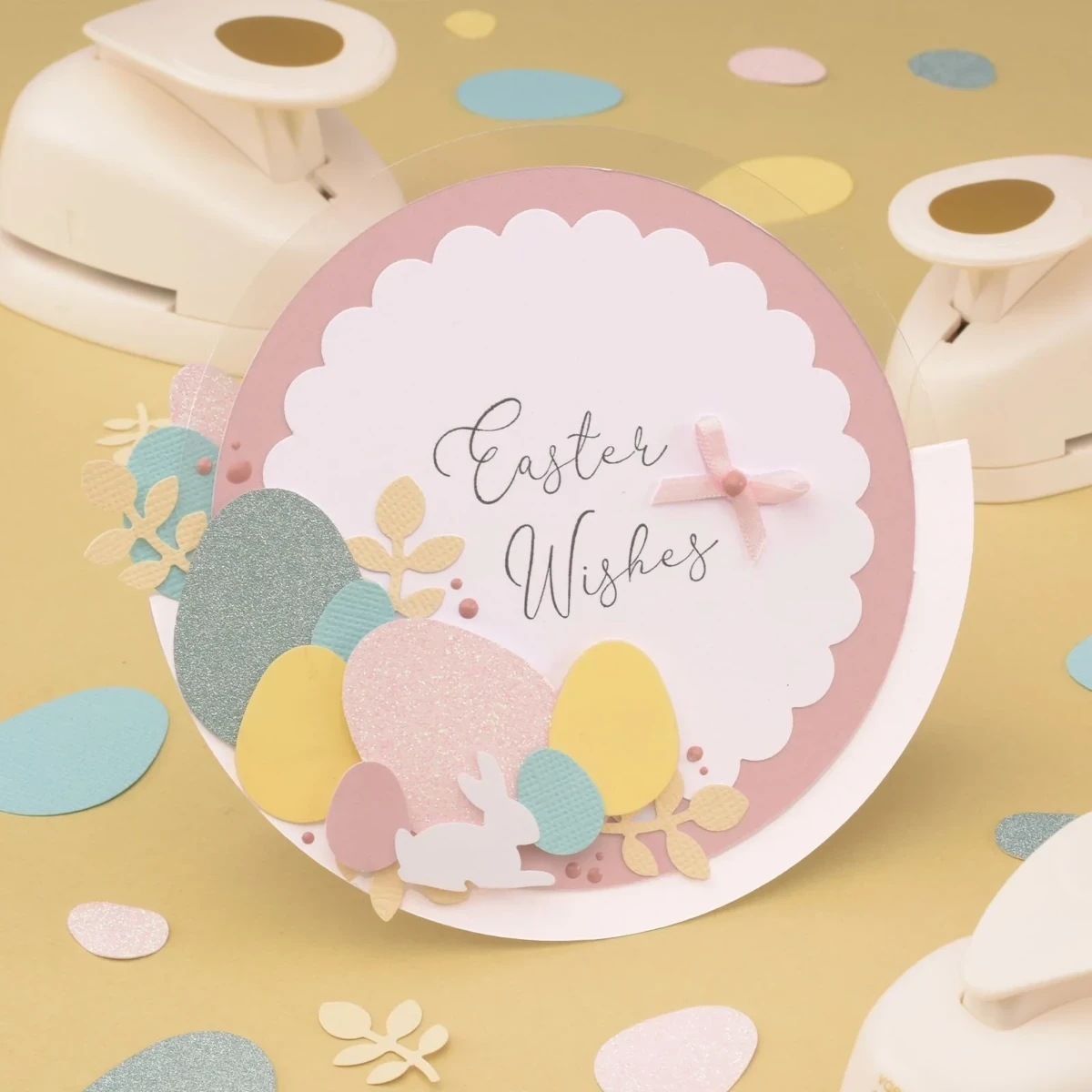 Zestaw trzech dziurkaczy ozdobnych Vaessen Creative w kształcie jajek to niezastąpione narzędzie dla każdej miłośniczki rękodzieła, szczególnie w okresie przygotowań do Wielkanocy. Dzięki trzem różnym rozmiarom (1,5 cm, 2,4 cm oraz 3,7 cm wysokości) z łatwością stworzysz wielowarstwowe dekoracje, bazy do kart okolicznościowych czy elementy do scrapbookingowych albumów.