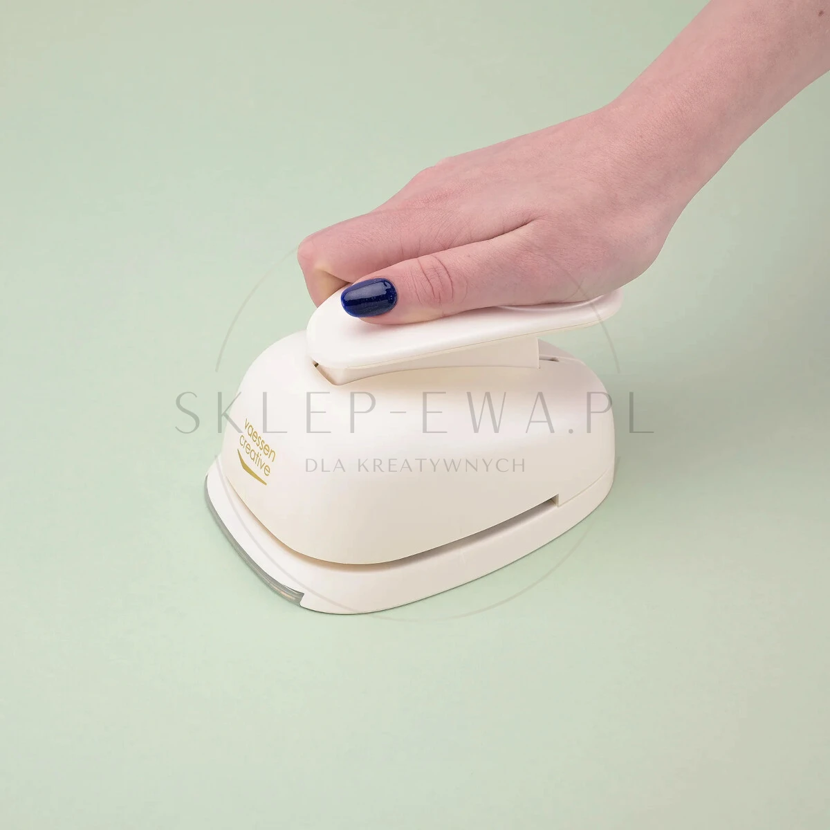 Dziurkacz Super Jumbo marki Vaessen Creative to jeden z największych modeli dostępnych na rynku, stworzony z myślą o ambitnych projektach DIY. Pozwala uzyskać perfekcyjne koło o średnicy 7,6 cm, które może służyć jako baza pod duże tagi prezentowe, etykiety na przetwory, a nawet jako element dekoracji ściennych czy girland. Dzięki niemu unikniesz mozolnego wycinania nożyczkami, zyskując za każdym razem idealnie gładką krawędź.