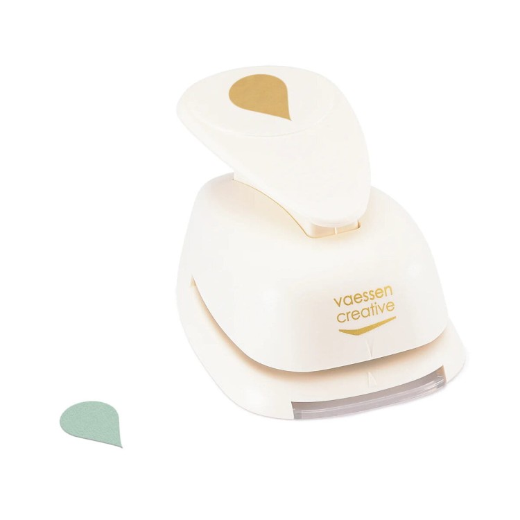 Duży dziurkacz ozdobny Kropla Vaessen Creative to efektowne narzędzie do tworzenia wyrazistych dekoracji z papieru i kartonu. Dzięki wygodnemu mechanizmowi z łatwością wytniesz duże krople z papieru, brystolu, zdjęć, korka czy cienkiej pianki, tworząc mocne akcenty na kartkach okolicznościowych, zaproszeniach, stronach albumów, w journalach i planerach. Większy motyw świetnie nadaje się na centralny element kompozycji lub tło budowane z powtarzalnych kształtów.