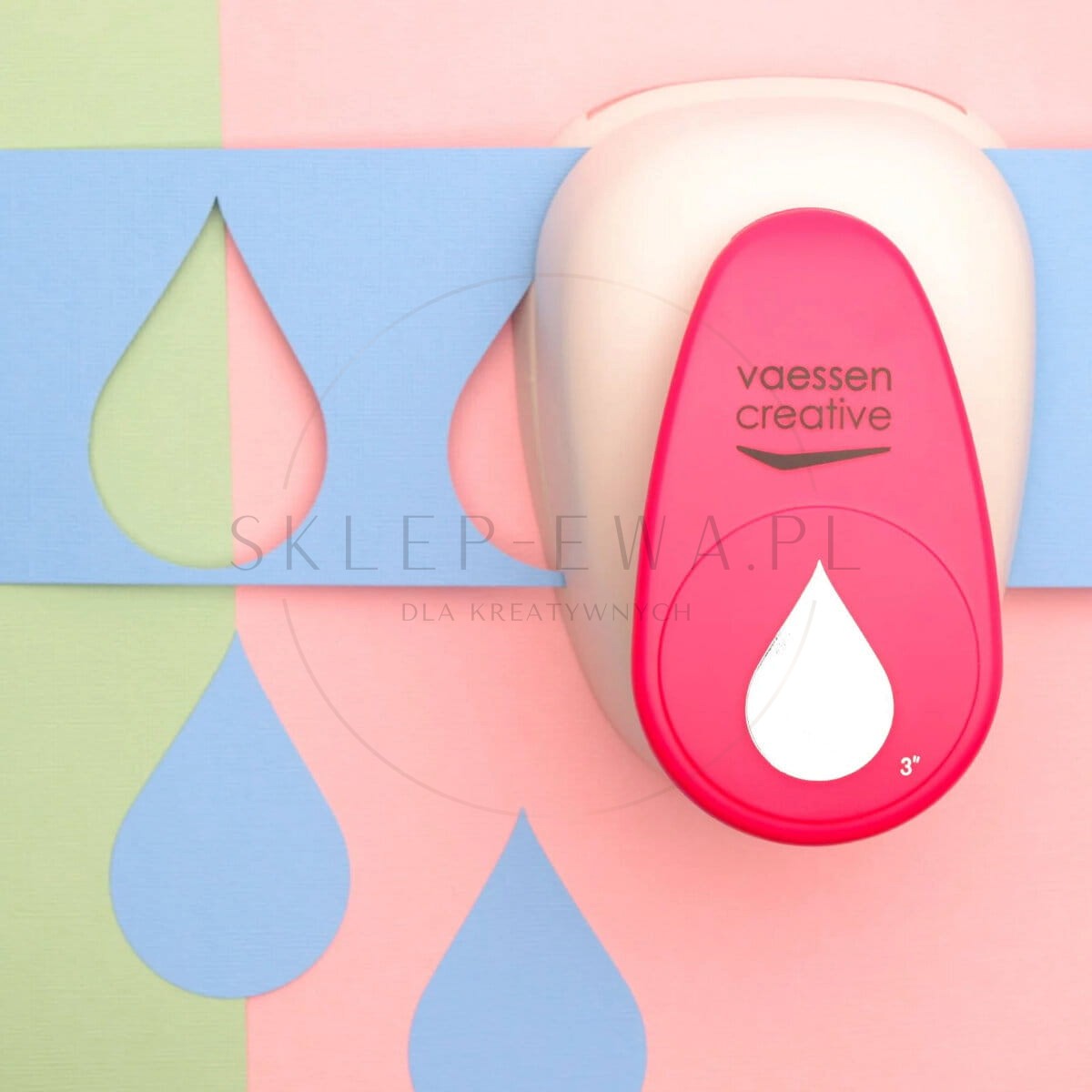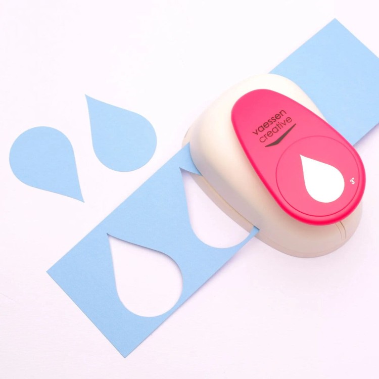 Ekstra duży dziurkacz ozdobny Kropla Vaessen Creative to narzędzie stworzone do najbardziej efektownych dekoracji papierowych. Pozwala wygodnie wycinać bardzo duże krople z papieru, kartonu, zdjęć, korka i cienkiej pianki, dzięki czemu z łatwością stworzysz przykuwające wzrok kompozycje na kartkach okolicznościowych, zaproszeniach, plakatach, stronach albumów, w journalach czy planerach. Tak duży motyw świetnie sprawdza się jako centralny punkt pracy, tło pod napisy lub baza do tworzenia warstw 3D.