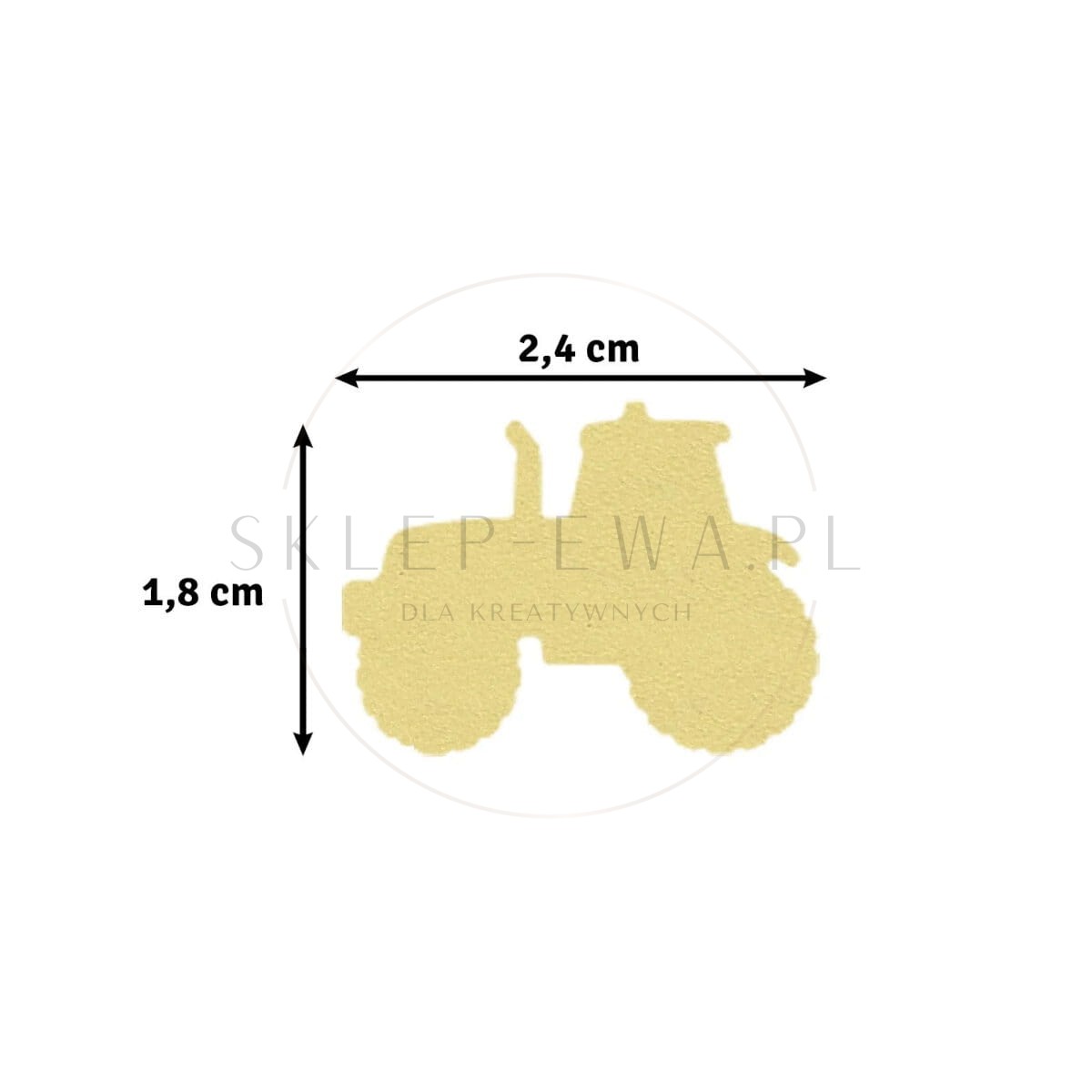 - Wycięty element ma wymiary ok. 2,4 × 1,8 cm.