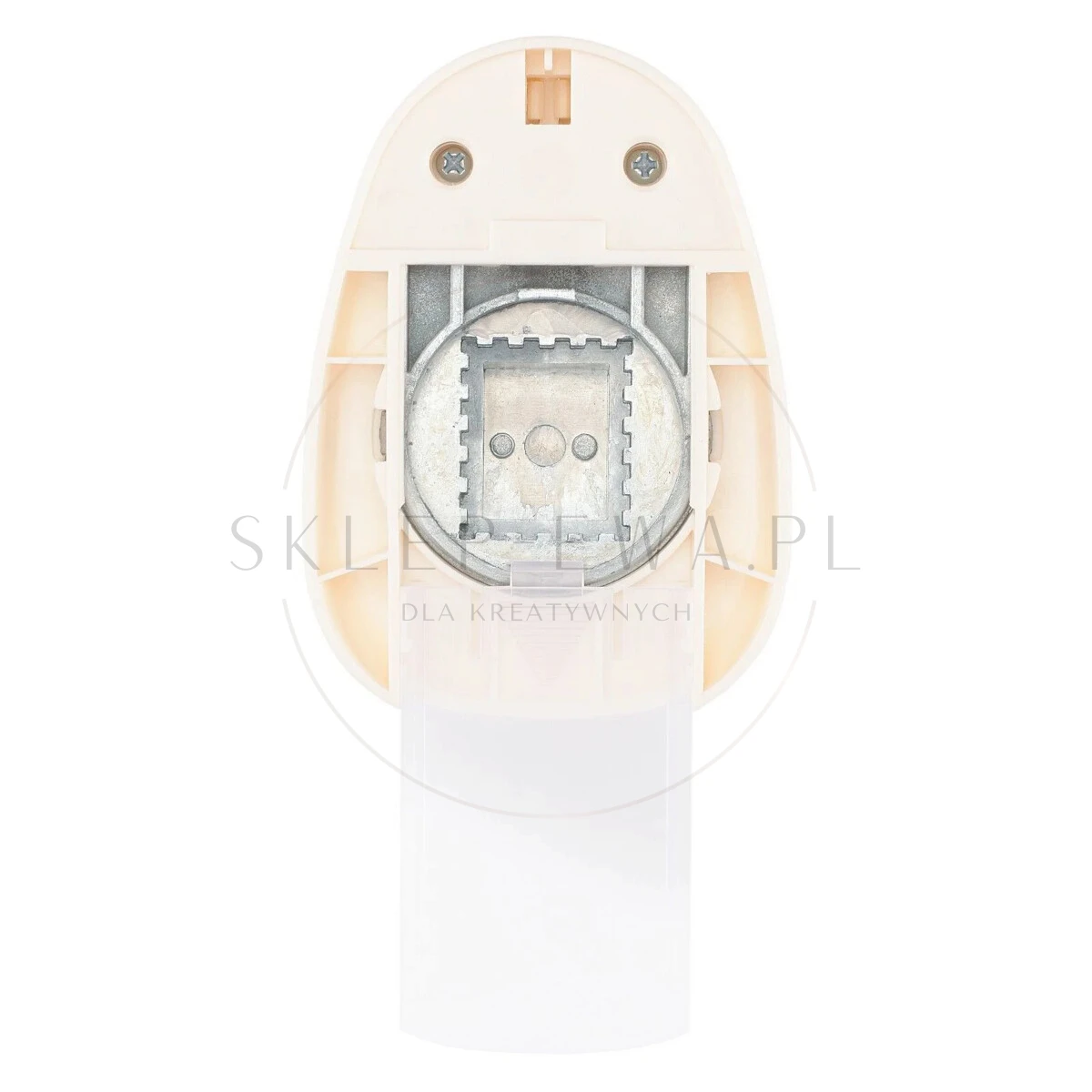 Podczas wycinania trzymaj dziurkacz oparty na blacie – to klucz do uzyskania równego wycisku i wygodnej pracy. Wsuń materiał do otworu prowadzącego i naciśnij dźwignię. Gotowy kształt wypadnie od razu, a pozostała ramka z otworem po znaczku może posłużyć jako szablon lub maska do dalszej dekoracji.
