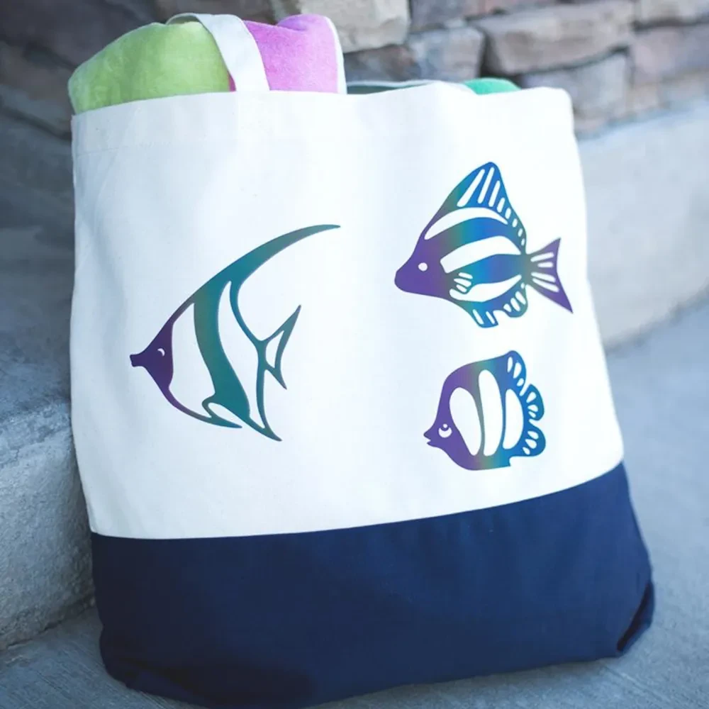 Pamiętaj jednak, aby wycinać go w odbiciu lustrzanym, aby ostateczny efekt był właściwy. Ta specjalna folia charakteryzuje się wielokolorowym połyskiem, który świetnie prezentuje się pod różnymi kątami, gdy światło odbija się od jej powierzchni.
