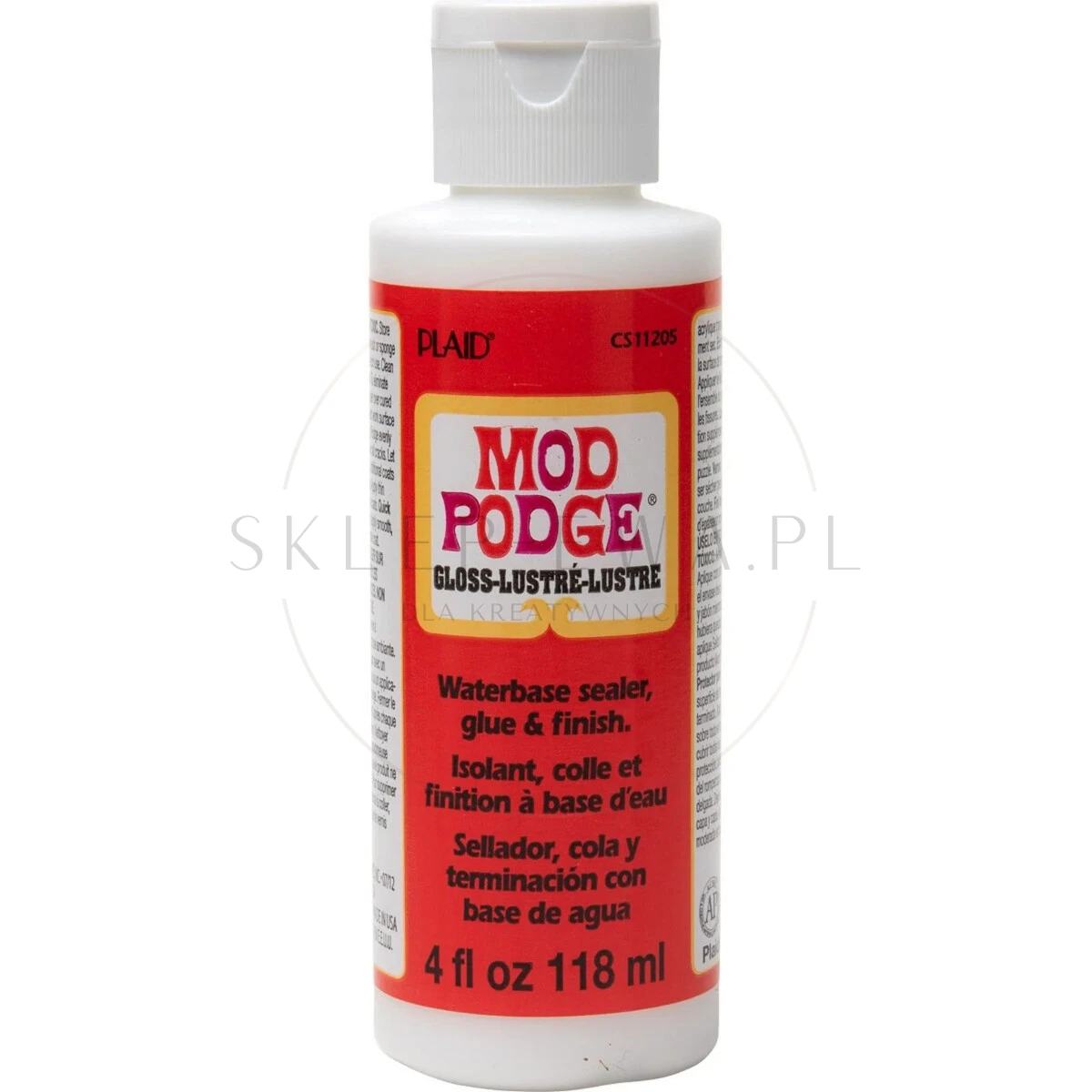Klej do decoupage 3w1 z werniksem połysk Mod Podge 118 ml to jeden z najbardziej rozpoznawalnych preparatów do decoupage'u na świecie. Opracowany przez firmę Plaid Enterprises, Mod Podge od ponad 50 lat łączy w sobie trzy funkcje: kleju do przyklejania motywów, podkładu gruntującego powierzchnię oraz lakieru zabezpieczającego – tym razem w efektownej, błyszczącej wersji Gloss.