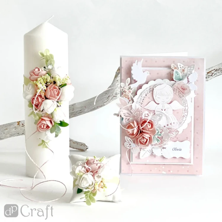 - Podklejanie napisów, ramek i wyciętych elementów na kartkach okolicznościowych.