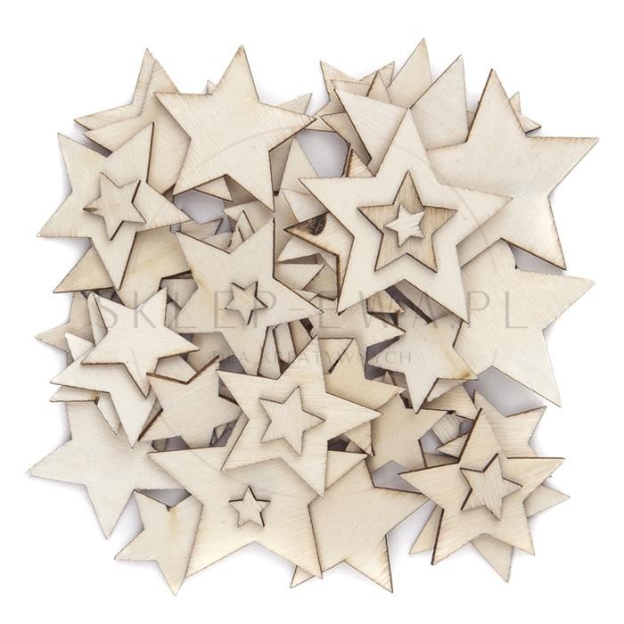 Drewniane gwiazdki, świetnie nadają się do zdobienia różnymi technikami - malowanie, decoupage, stemplowanie. Przydatne przy wykonywaniu kartek okolicznościowych, albumów, ozdobnych pudełek czy pakowaniu prezentów.