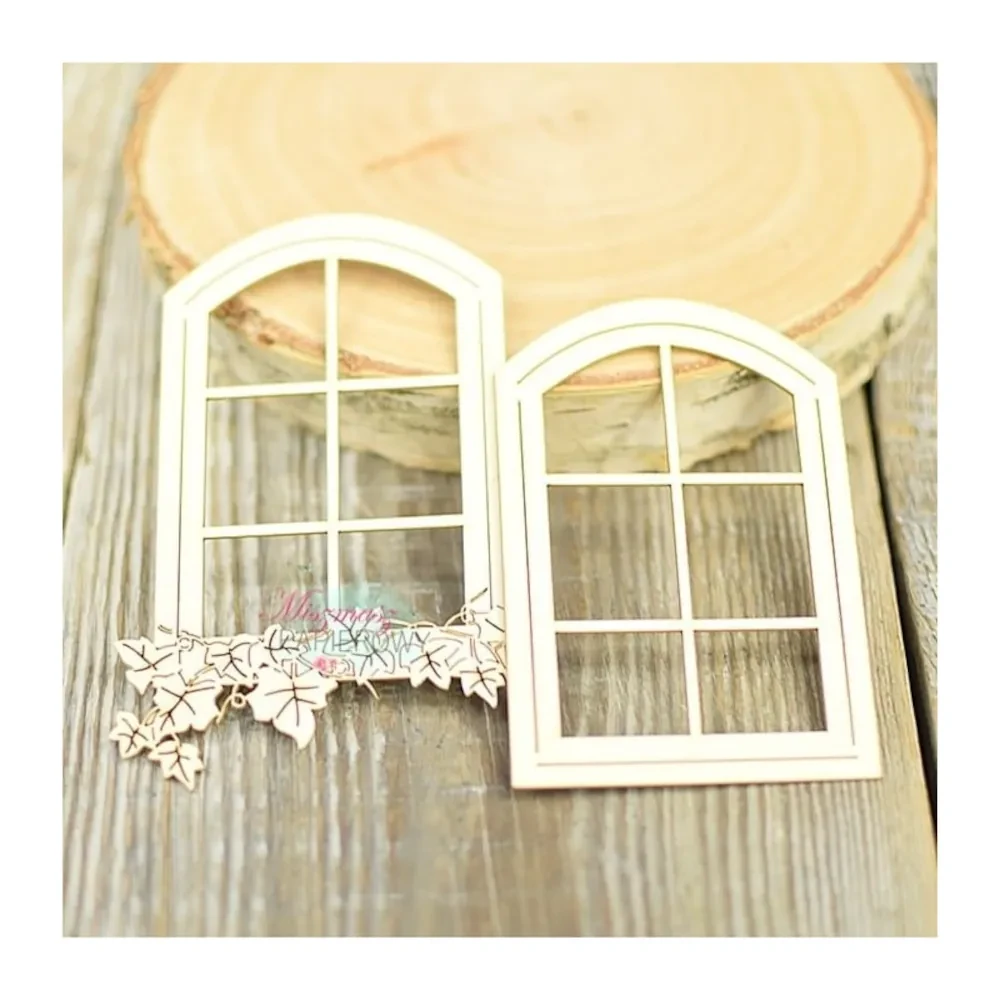 Okno z bluszczem na parapecie - tekturka ozdobna