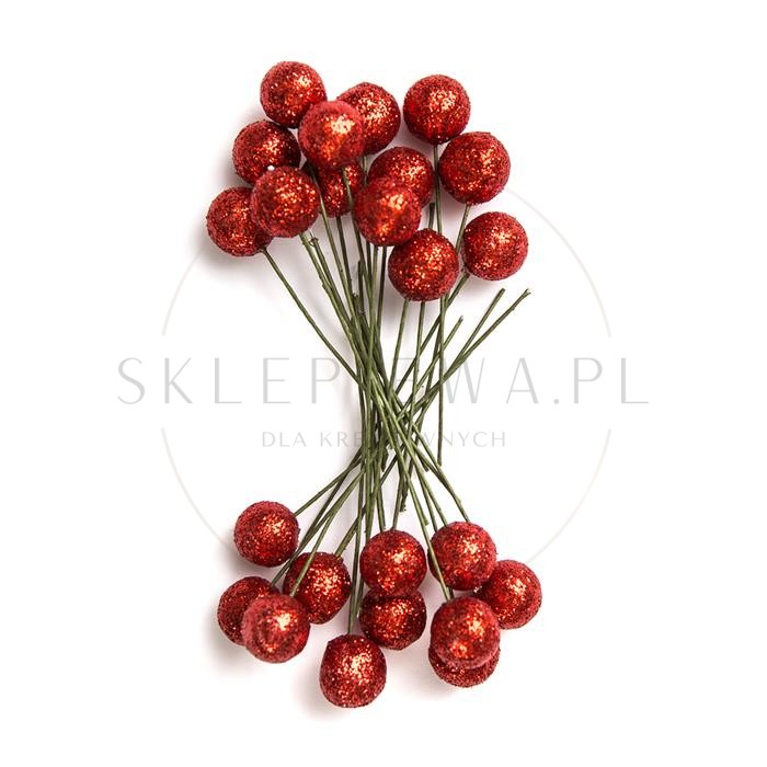 Owoce ostrokrzewu 12 mm Czerwone Brokat 24 sztuk dpCraft
