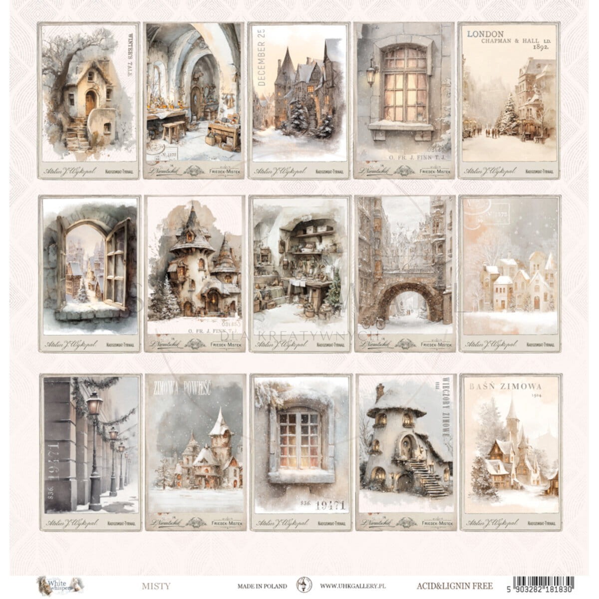 Papier Misty z kolekcji White Whispers UHK Gallery to delikatna mgiełka zimowych odcieni – połączenie bieli, szarości i beżu w klimacie spokoju i nostalgii. Idealny do świątecznych i romantycznych projektów.