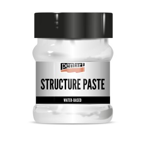 Drobnoziarnista pasta strukturalna Pentart. Biała, gęsta do efektów 3D. Idealna do pracy z szablonami lub modelowania szpachelką. Po wyschnięciu jest chropowata i wodoodporna. Może być szlifowana i malowana. Pastę przed nałożeniem możesz także mieszać z farbami i pigmentami.