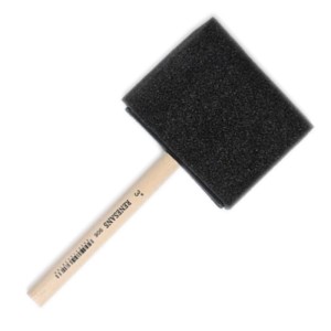 Pędzel gąbkowy płaski o szerokości około 7,5 cm.