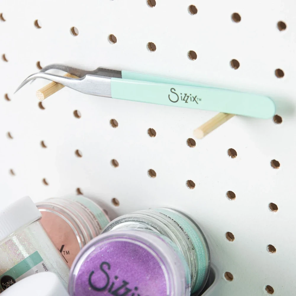 Pęseta Sizzix to narzędzie ręczne, które jest idealne do precyzyjnej pracy z drobnymi elementami, takimi jak półperełki, jety czy papierowe scrapki. Jest to pęseta z cienką, wygiętą końcówką, co umożliwia łatwe i precyzyjne chwytanie nawet najmniejszych elementów.