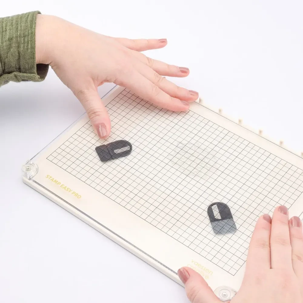 Aby ułatwić proces stemplowania, do platformy dołączone są dwa magnesy, które pozwalają na przymocowanie papieru lub kartonu do podstawy. Materiał nie będzie się przesuwał podczas odbijania stempli.