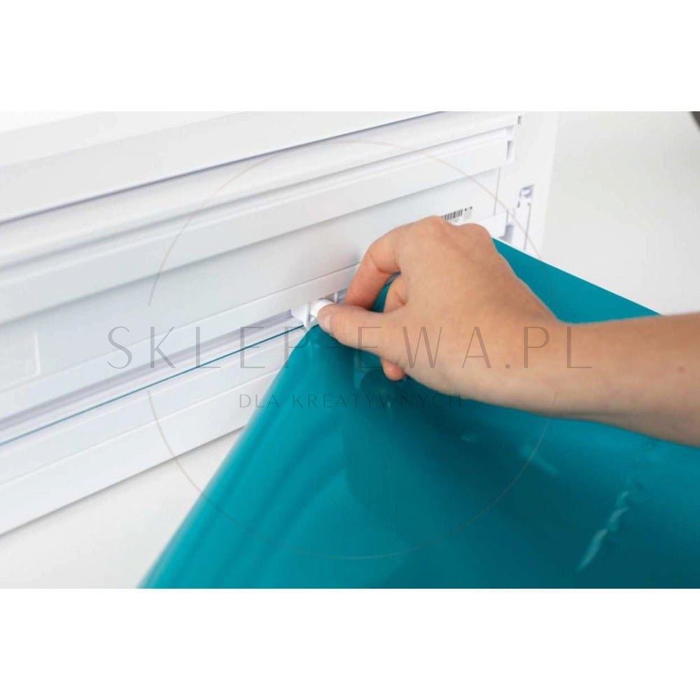 Silhouette Cameo 4 jako jedyny model posiada wbudowany podajnik do folii z możliwością regulacji szerokości oraz odcinak ułatwiający oddzielenie wzoru od rolki.
