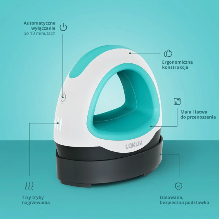 Praca z wysokimi temperaturami wymaga zaufanego sprzętu. Prasa LOKLiK posiada certyfikaty bezpieczeństwa FCC i UL oraz inteligentną funkcję automatycznego wyłączania po 10 minutach bezczynności. W zestawie znajdziesz również izolowaną podstawę, która pozwala bezpiecznie odłożyć gorące urządzenie w dowolnym momencie pracy, chroniąc blat przed przypadkowym uszkodzeniem.