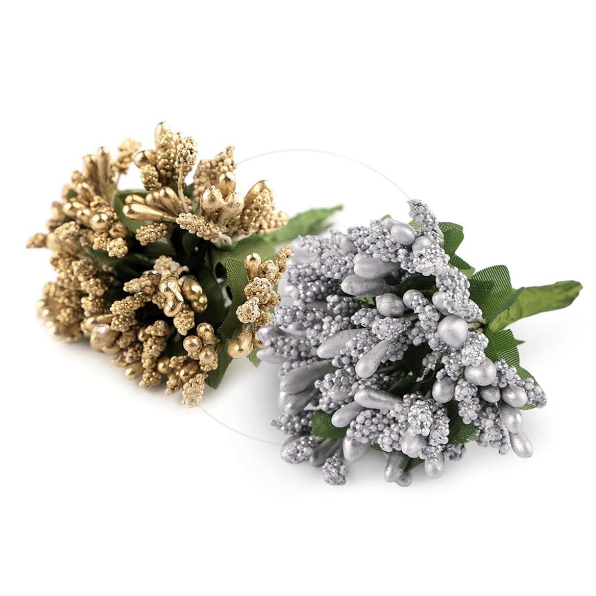 Pręciki można umieścić w środku sztucznych kwiatów, wieńców oraz stroików. Doskonale nadają się również do włożenia w półprodukty styropianowe, dodając im unikalnego charakteru. Dzięki swojemu metalicznemu wykończeniu świetnie uzupełnią kwiatowe wianki do włosów, fascynatory oraz opaski na głowę, nadając im elegancji i wyrafinowania.