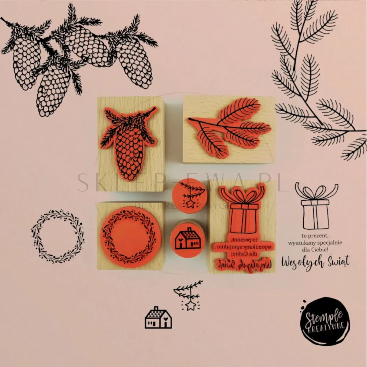 Szukasz sposobu na dekoracje świąteczne? Zapoznaj się z naszymi stemplami na drewnianych bloczkach! Możesz je wykorzystać do ozdabiania papieru, tkanin, drewna i innych materiałów. Są od razu gotowe do użycia. Wybierz kolor tuszu i odbijaj bożonarodzeniowe motywy.