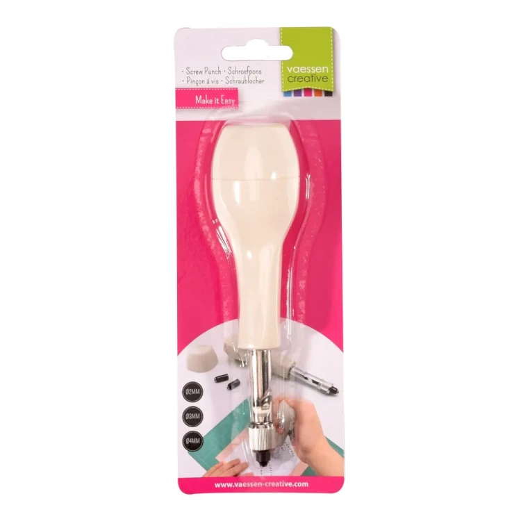 Chcesz wykonywać łatwo i estetycznie otwory w swoich scrapowych pracach? Użyj śrubowego przyrządu do robienia otworów. Prosty w użyciu. Wykonasz nim otwory w kartonie, tekturze, tkaninie (także wielowarstwowo), skórze, cienkim metalu lub drewnie.