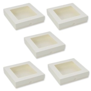 Pudełko kwadratowe Kremowe z okienkiem niskie 15 x 15 cm Rzeczy z Papieru 5 sztuk