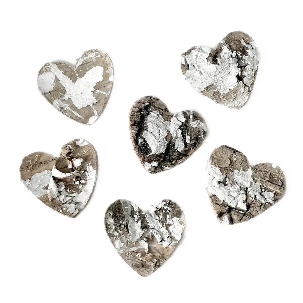 Serca wycięte są z naturalnej kory drzewa i ozdobione białą farbą, co dodaje im wyjątkowego uroku. Ich organiczny wygląd i tekstura nadają projektom naturalnego i rustykalnego charakteru. Doskonale komponują się z kompozycjami jesiennymi oraz tematyką świąteczno-zimową, tworząc atmosferę ciepła i magii.