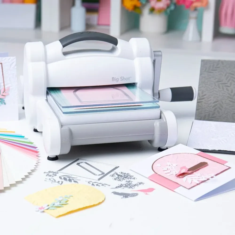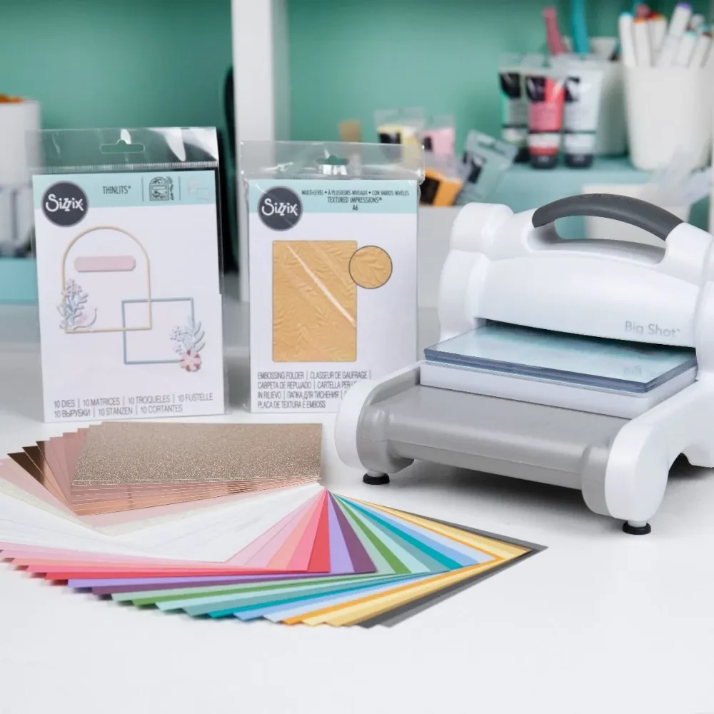 Zestaw startowy Sizzix Big Shot 666175 to idealny wybór zarówno dla początkujących, jak i doświadczonych twórców. Zawiera ekskluzywne wykrojniki i folder do embossingu, a także kolorowe kartony, pozwalając na rozpoczęcie tworzenia od razu po wyjęciu z pudełka!