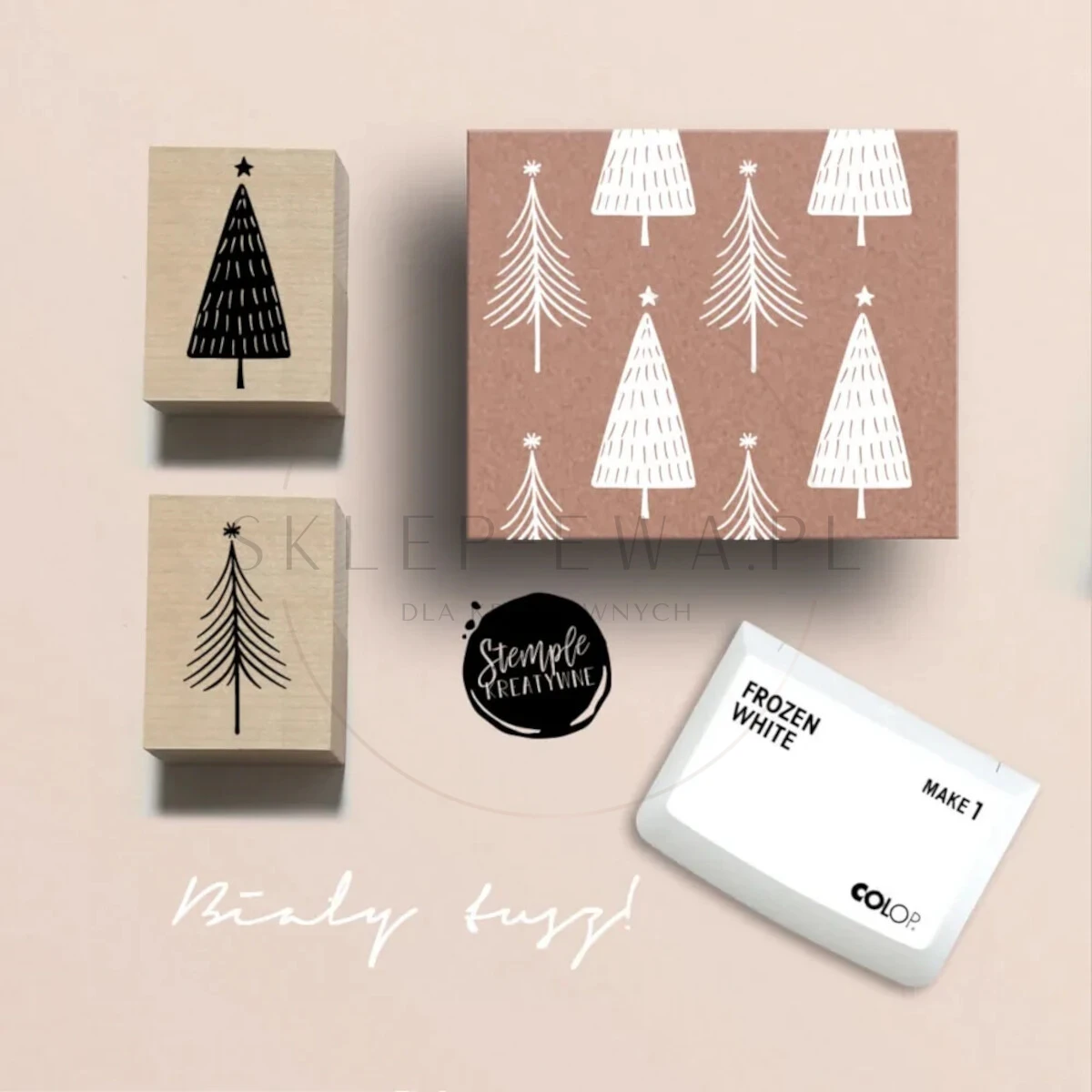Świąteczne stemple na drewnianym bloczku.