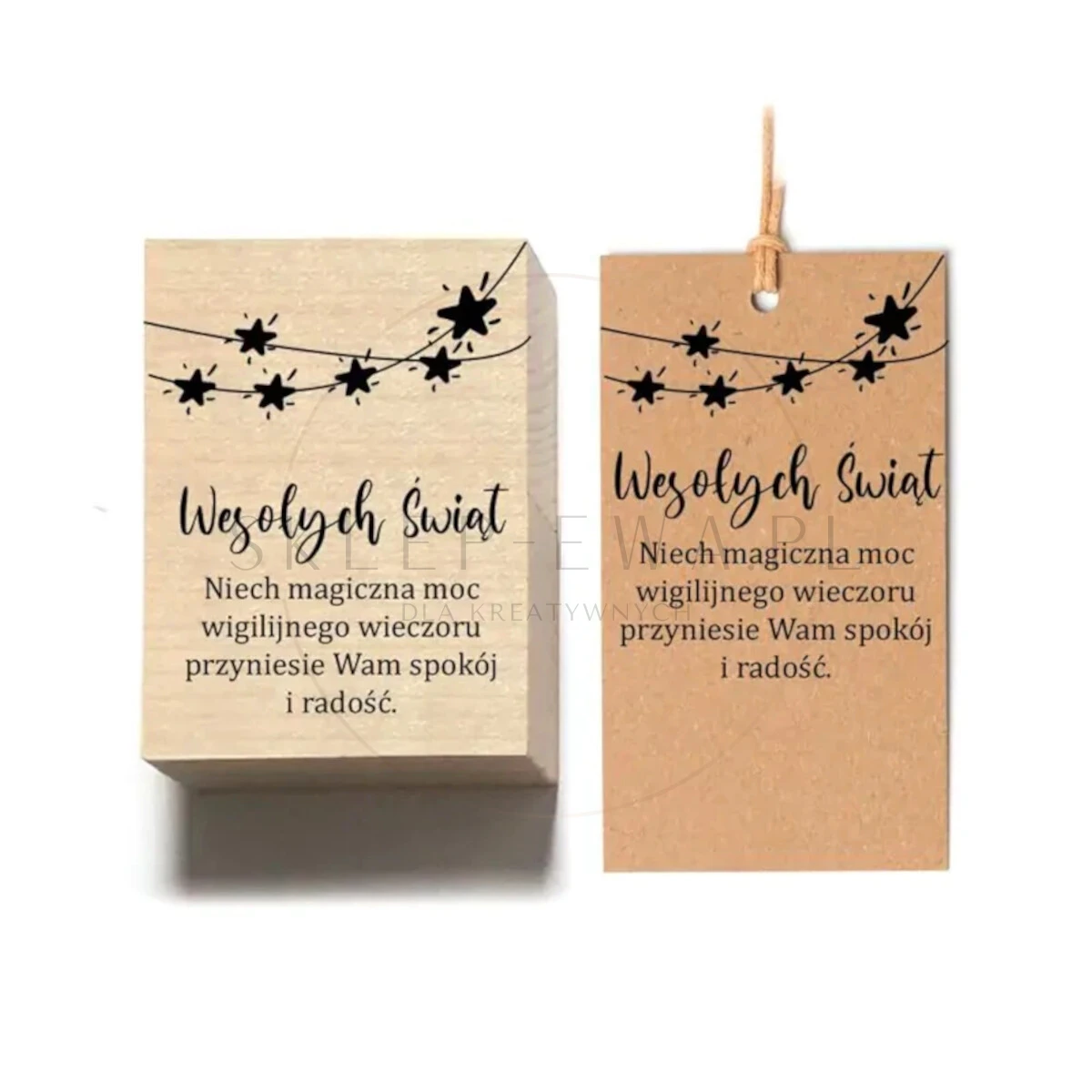 Stempel drewniany z gwiazdami i bożonarodzeniowym życzeniami to niezastąpione narzędzie do tworzenia niepowtarzalnych kartek, zawieszek oraz papierów do pakowania prezentów. Wykonany z wysokiej jakości polskiego drewna bukowego, ten stempel to dzieło polskich artystów.