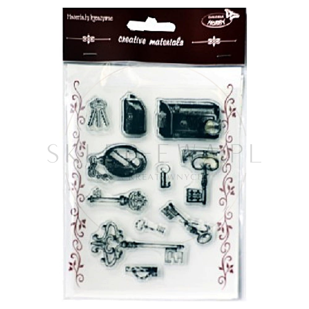 Zestaw stempli ze starymi kłódkami, kluczami i zamkami. Stemple umieszczone są na specjalnej folii ochronnej. Stemple najlepiej przechowywać na oryginalnej folii lub w specjalnych albumach do stempli.