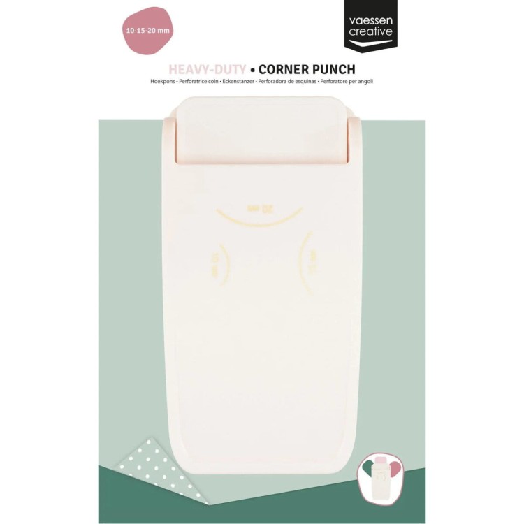 Super Dziurkacz Zaokrąglacz 3w1 od Vaessen Creative to niezastąpione narzędzie do zaokrąglania narożników w trzech rozmiarach: 10 mm, 15 mm i 20 mm. Dzięki solidnej konstrukcji radzi sobie z różnorodnymi materiałami, takimi jak papier do 500 g/m², laminaty, pianka EVA (do 2 mm), drewno balsowe (do 1 mm) czy cienkie blachy metalowe (do 1 mm) . Idealny dla miłośniczek scrapbookingu, journalingu i innych projektów kreatywnych.