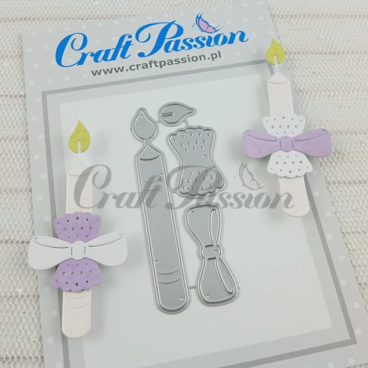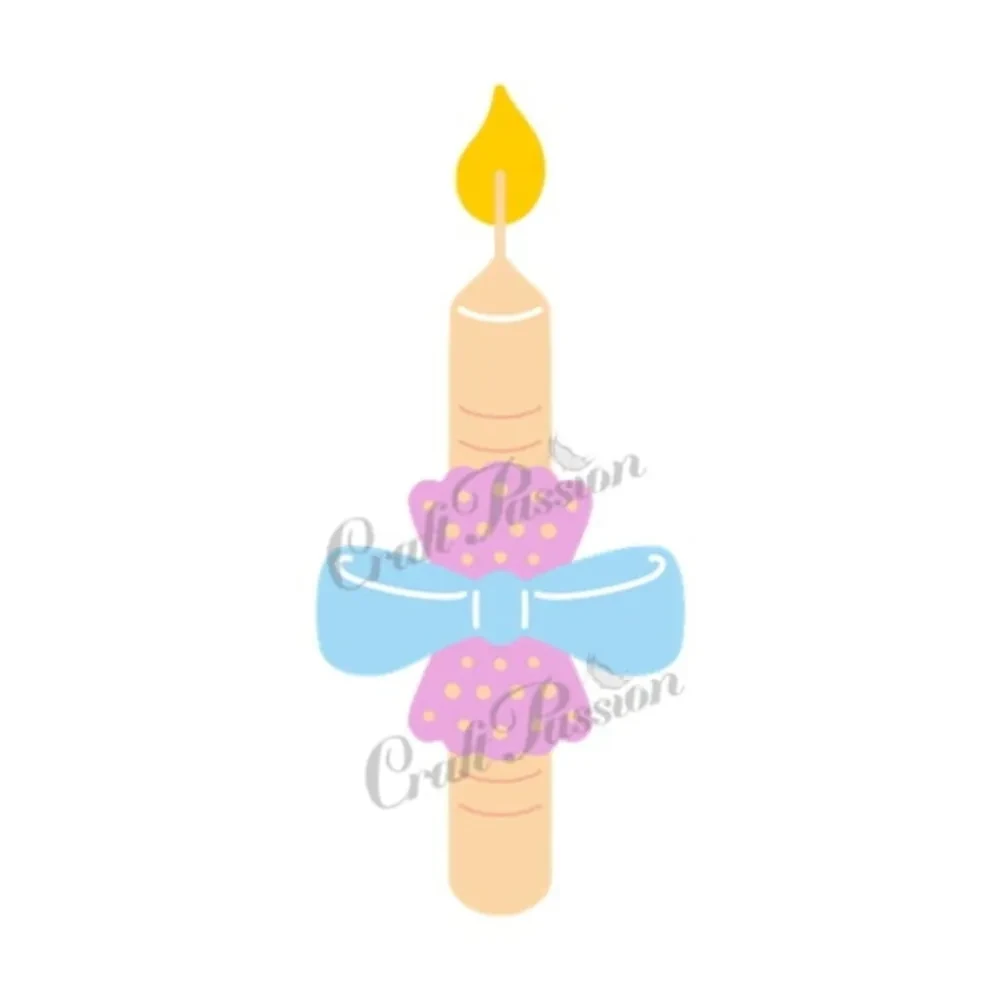 Zestaw czterech metalowych wykrojników, które po złożeniu tworzą świecę do chrztu. Narzędzie do maszynek wycinająco-tłoczących. Zestaw pozwala tworzyć piękne, trójwymiarowe wzory, które idealnie nadają się do dekoracji i personalizacji zaproszeń, kartek czy albumów związanych z chrztem.