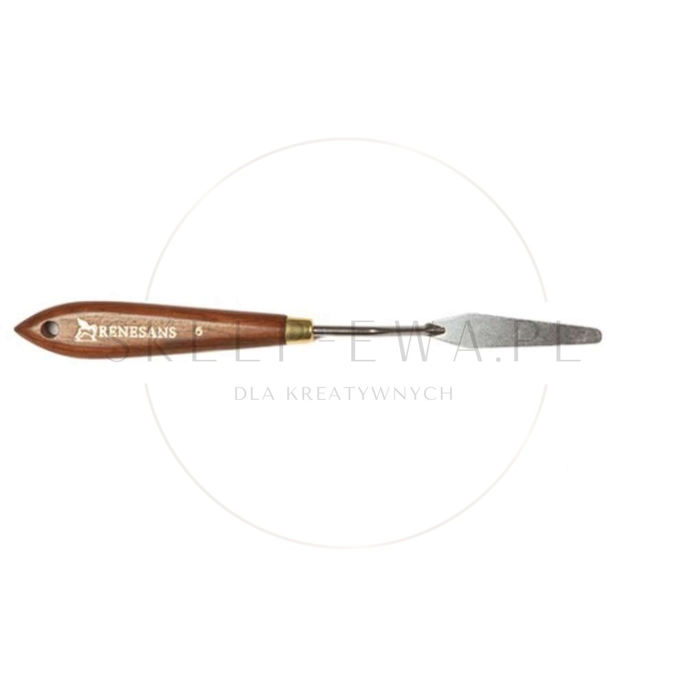 Szpachelka malarska Renesans. Rączka wykonana z drewna, lakierowana, dobrze leży w dłoni. Idealna do pracy z farbami akrylowymi, pastami, gruntami i preparatami żelowymi. Duży wybór dostępnych kształtów pozwali Ci wybrać właściwą szpachelkę do charakteru pracy.