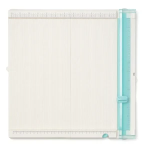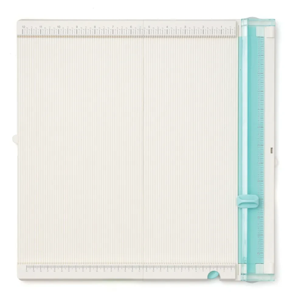 Tablica jest składana, więc nie będzie zajmować dużo miejsca. Po rozłożeniu jej przestrzeń robocza to 12 x 12 cali (~30,5x30,5 cm). Podziałka zarówno na trymerze, jak i na tablicy jest w calach i w centymetrach. Tytanowe ostrze trymera to pewne cięcie nawet grubych kartonów.