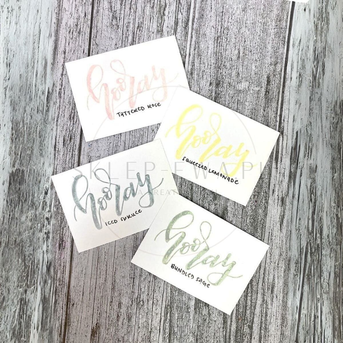 - 4 kolory w zestawie: Tattered Rose, Squeezed Lemonade, Iced Spruce, Bundled Sage.