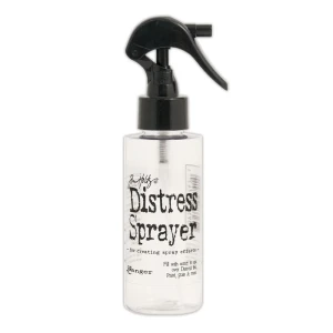 Nowa butelka ze spryskiwaczem Tim Holtz Distress Sprayer to idealne narzędzie do tworzenia efektów mgiełki i rozpylania. Możesz napełniać ją wodą i dodawać farb, pigmentów i barwników. Duża pojemność butelki umożliwi Ci szybkie i łatwe pokrycie powierzchni.