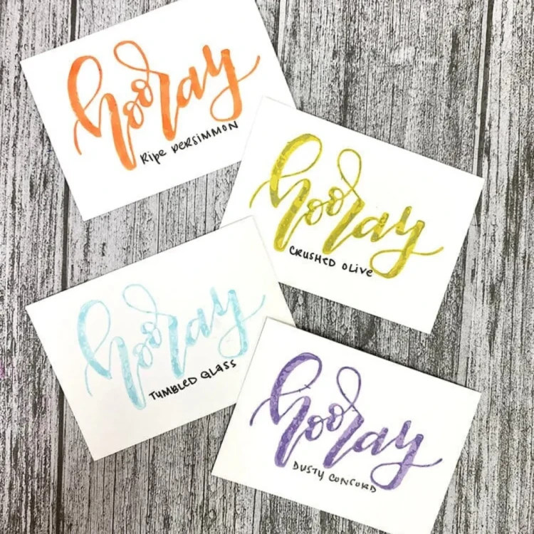 - Kolory w zestawie: Ripe Persimmon, Crushed Olive, Tumbled Glass, Dusty Concord.