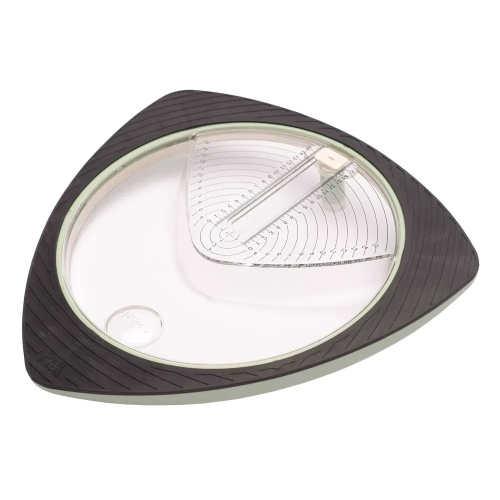Zestaw składa się z narzędzia do kółek oraz zapasowych ostrzy. Ostrza są przechowywane w specjalnych miejscach pod gumową podstawą. Narzędziem do kółek możesz bez problemu wycinać w różnych materiałach, takich jak karton o gramaturze do 250 g/m2, pianka o grubości do 2 mm czy folia termokurczliwa.