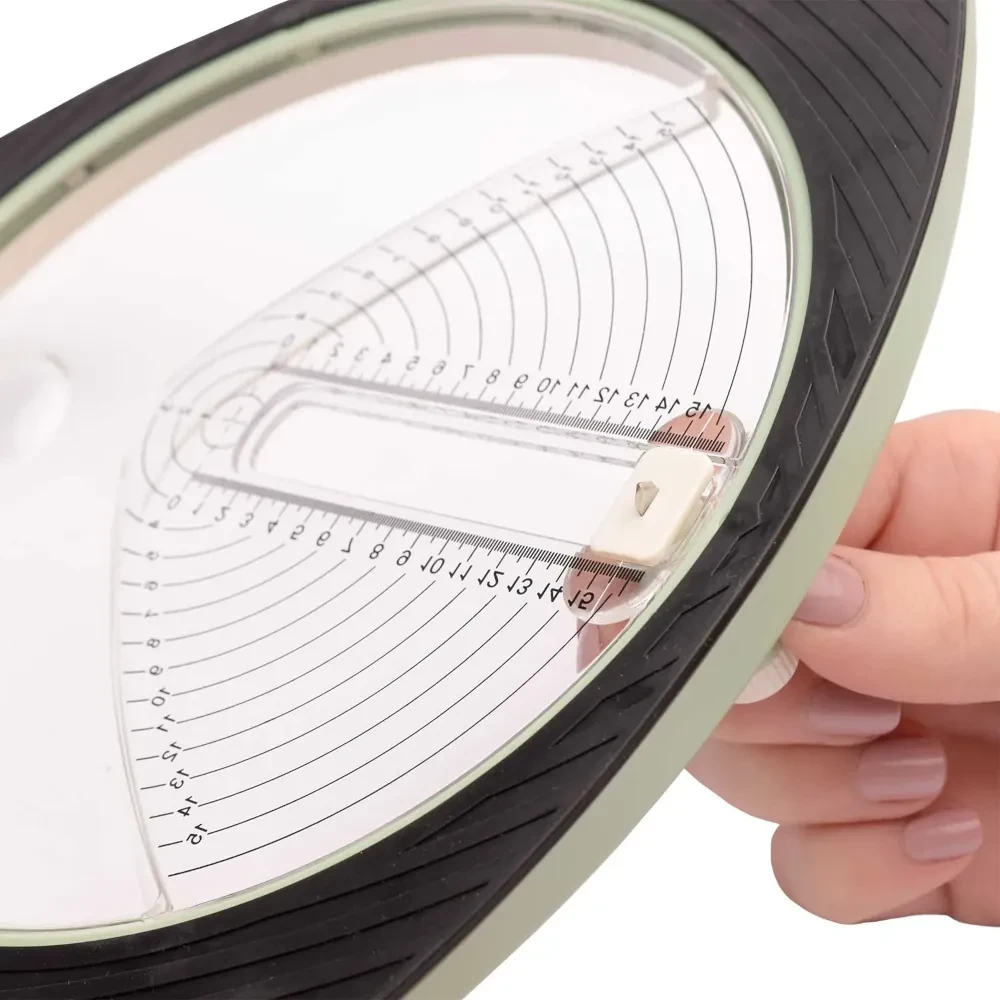 Możliwe jest również cięcie wielu arkuszy papieru jednocześnie, do maksymalnie 13 arkuszy papieru o gramaturze 70 g/m2. Ergonomiczny uchwyt zapewnia wygodną pracę podczas wycinania równych kół o różnych rozmiarach. Wycinarka jest odpowiednia dla prawo- i leworęcznych osób.