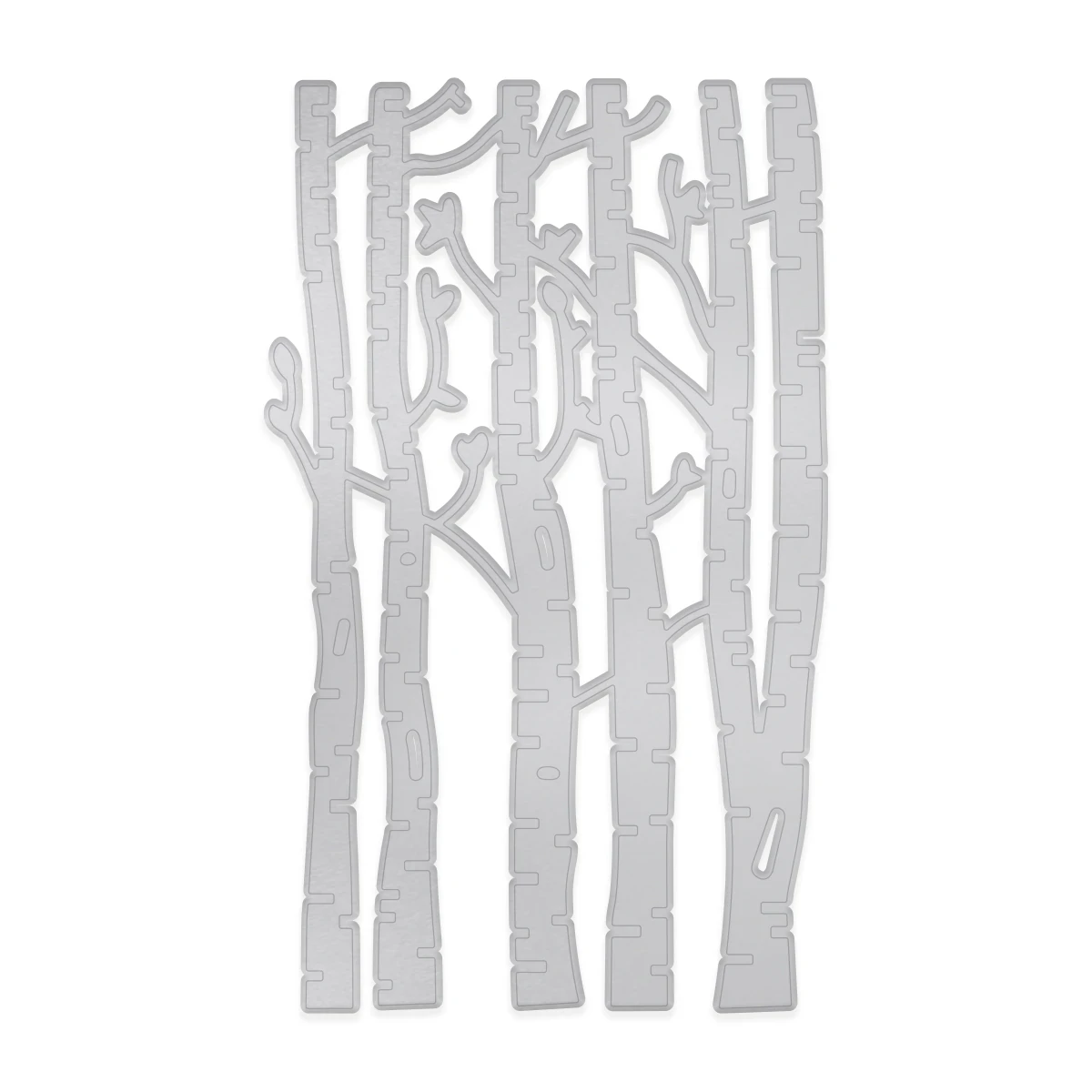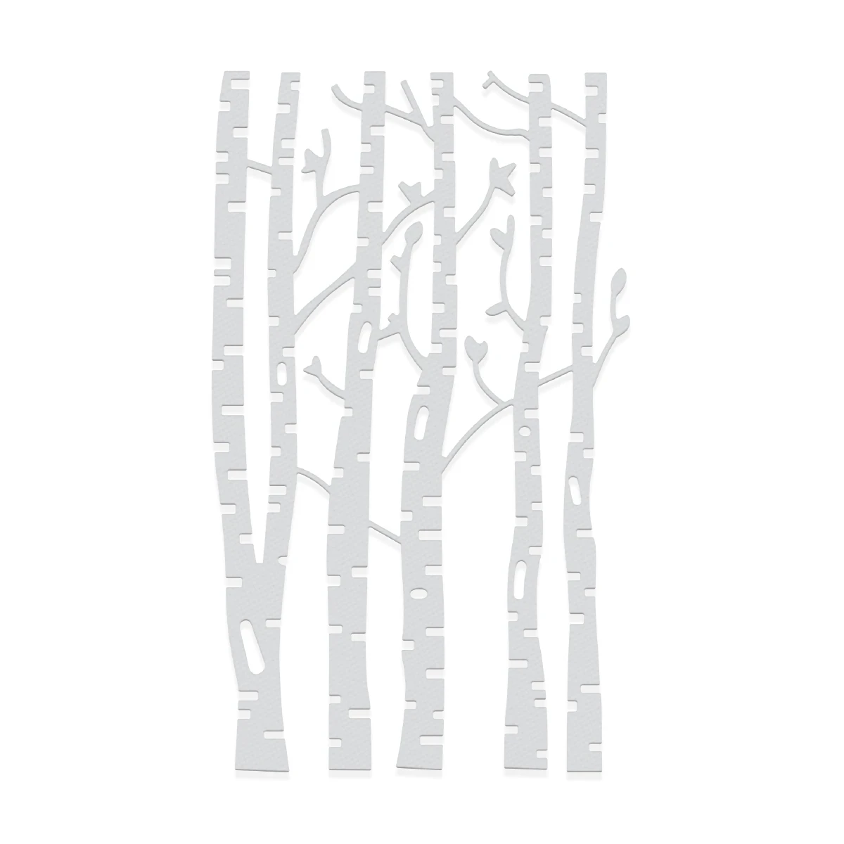 Wykrojnik drzewa brzozowe to panel z motywem brzozowego lasu – kilka smukłych pni z charakterystyczną korą i delikatnymi gałązkami. Idealny do tworzenia klimatycznych tła w albumach, kartkach i kompozycjach sezonowych.