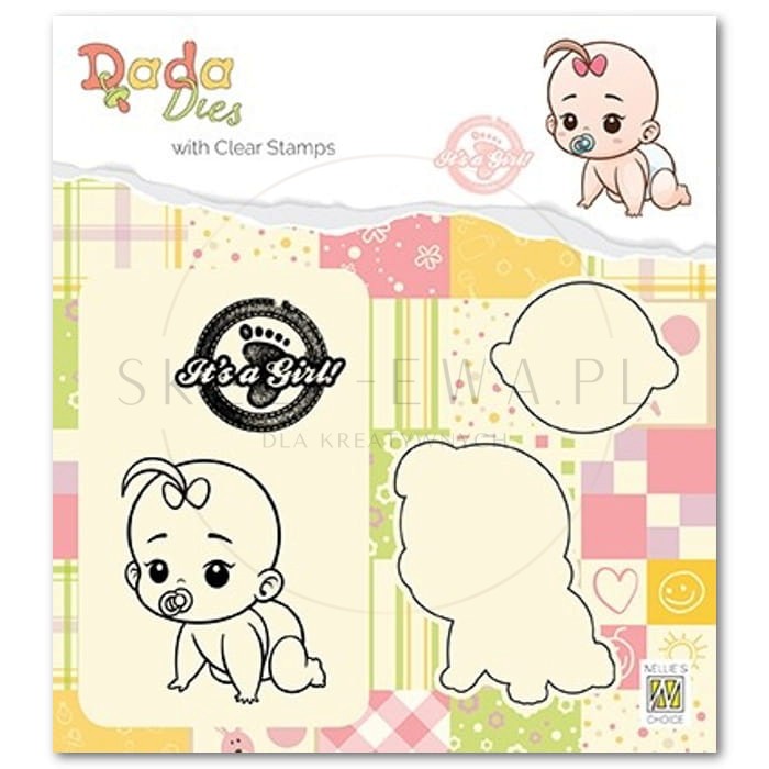 Zestaw wykrojniki i stemple z serii Dada Dies, It's a girl. Szczególnie przydatne przy tworzeniu projektów dla dzieci i o dzieciach.