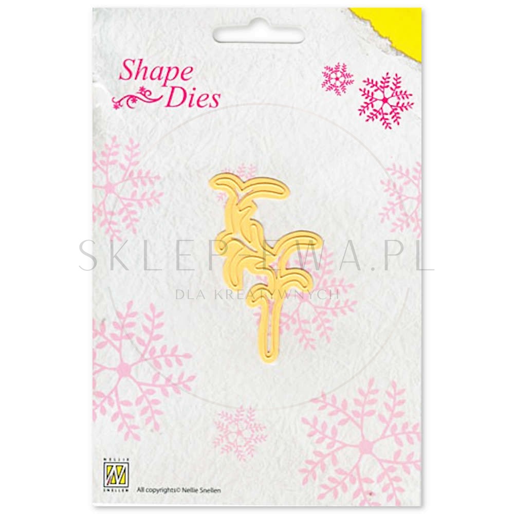 Wykrojnik o kształcie poskęcanej gałązki. Wymiar wykrojnika 65x37 mm, kombatybilny z wieloma maszynkami ręcznymi tłocząco-wycinającymi QuicKutz Revolution; CuttleBug; SpellBinder Wizard; AccuCut Zip'eMate; Sixxiz BigShot i BigKick.
