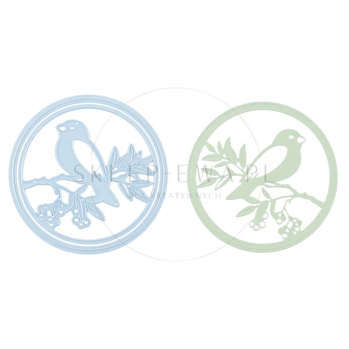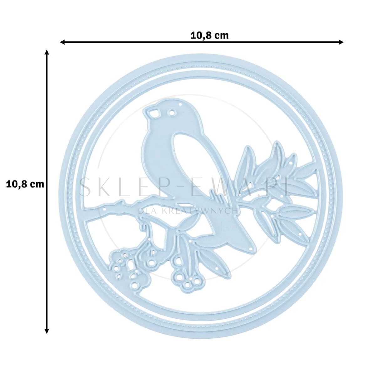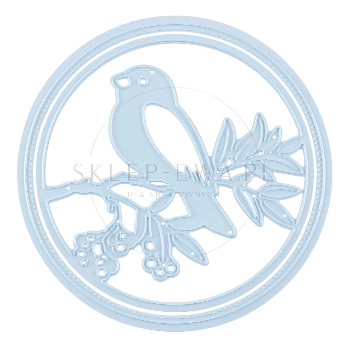 - Motyw: Okrągła ramka z ptaszkiem na gałęzi.