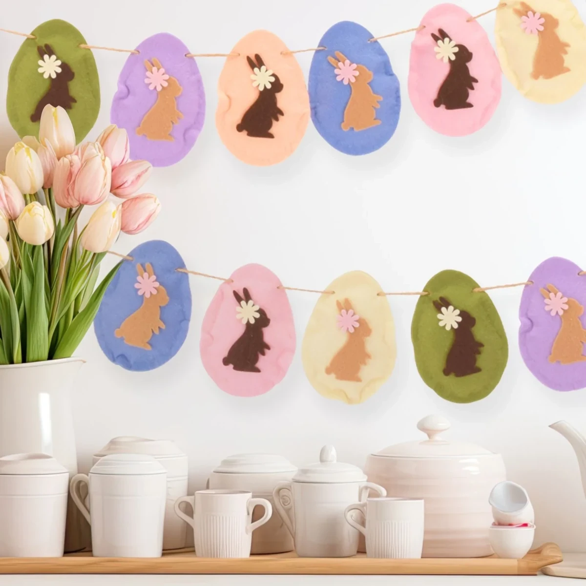 - 7 elementów w zestawie: ozdobne ramki o różnych brzegach, sylwetka zajączka oraz trzy rodzaje kwiatów.