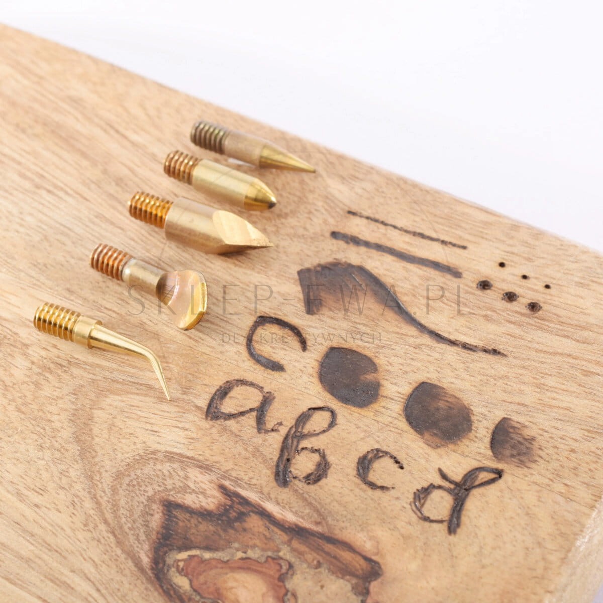 Wypalarka do drewna (pirograf) z 5 końcówkami.